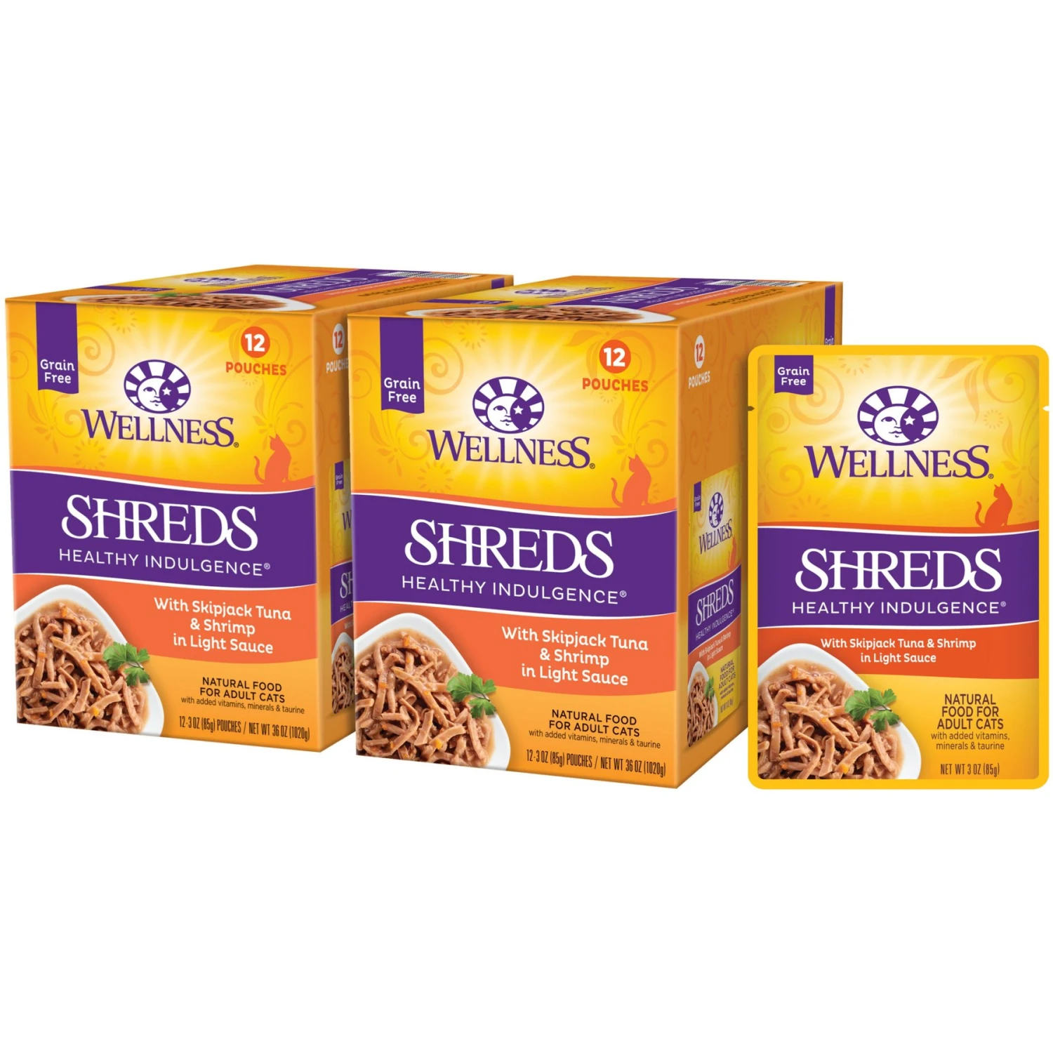 Wellness Healthy Indulgence Shreds With Skipjack Tuna & Shrimp In Light Sauce Grain-Free Wet Cat Food Pouches