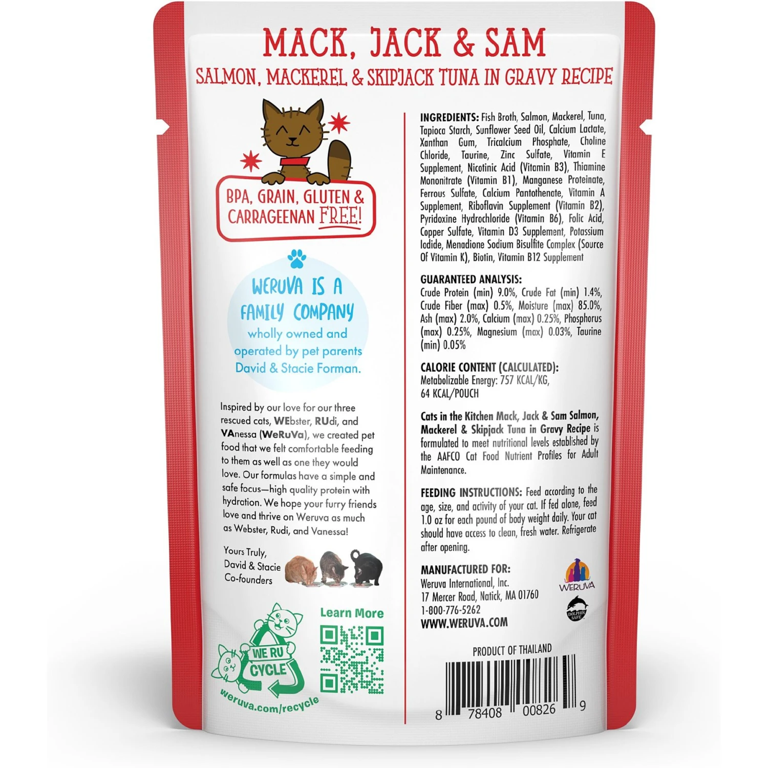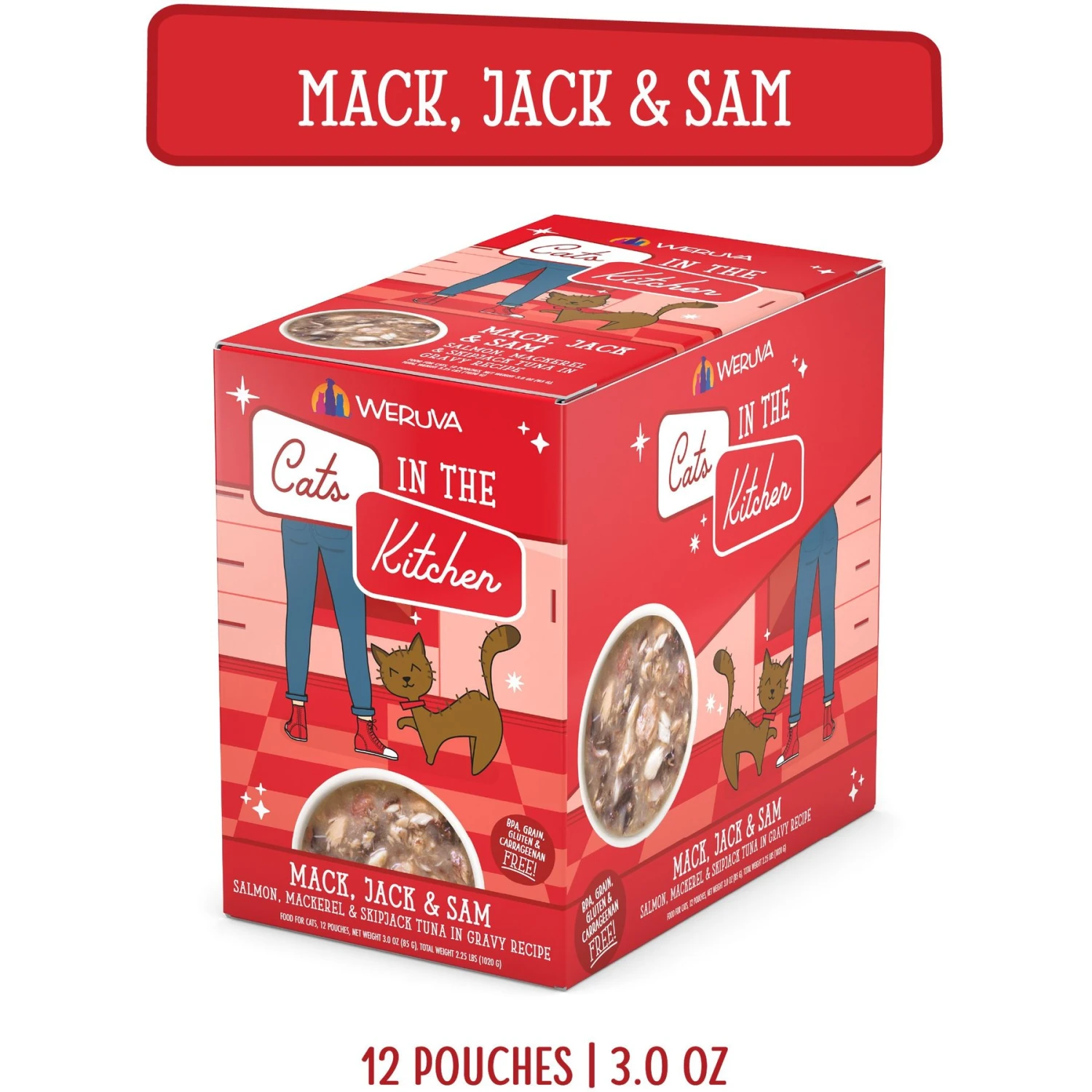 Weruva Cats In The Kitchen Mack, Jack & Sam Salmon, Mackerel & Tuna Recipe Grain-Free Cat Food Pouches