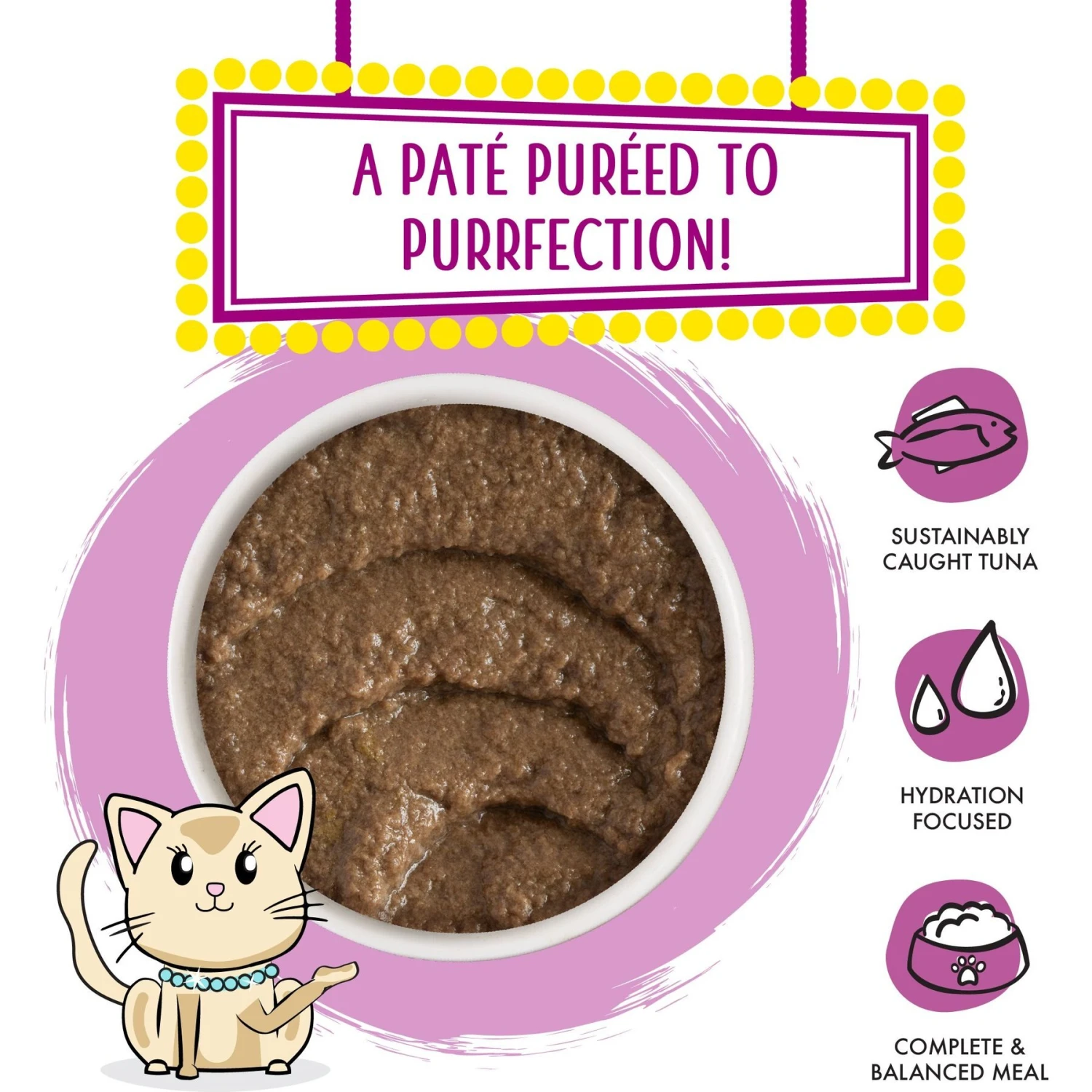 - Tuna and salmon pureed into an irresistible, paw-fect pate.