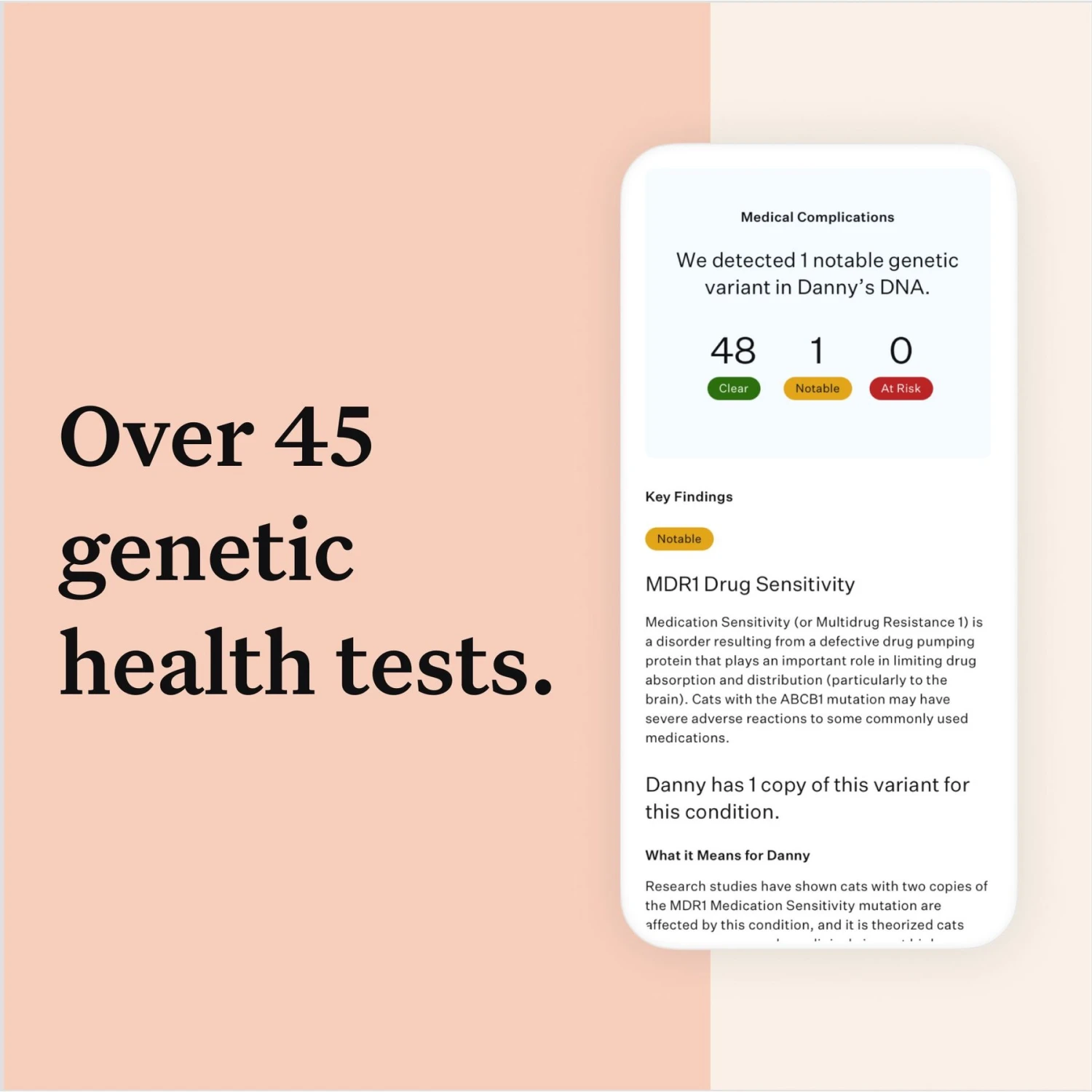 - There are over 45 health tests that screen for genetic conditions and medical complications.